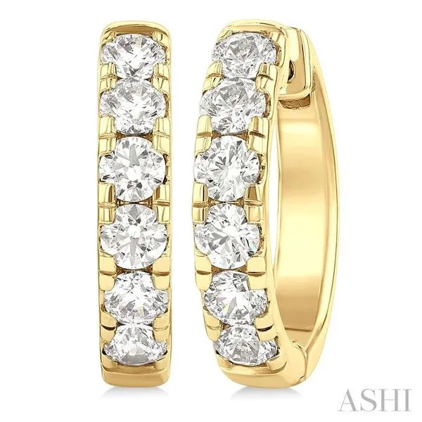 1 1/2 Ctw Round Cut Diamond Hoop Earrings in 14K Yellow Gold Chandlee Jewelers Athens, GA