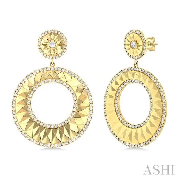 1 7/8 ctw Open Window Circle Dangler Round Cut Diamond Fashion Earrings in 14K Yellow Gold Chandlee Jewelers Athens, GA