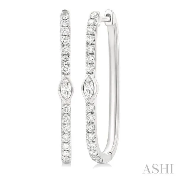 (706) 543-46531/3 Ctw Marquise and Round Cut Diamond Rectangular Fashion Hoop Earrings in 14K White Gold