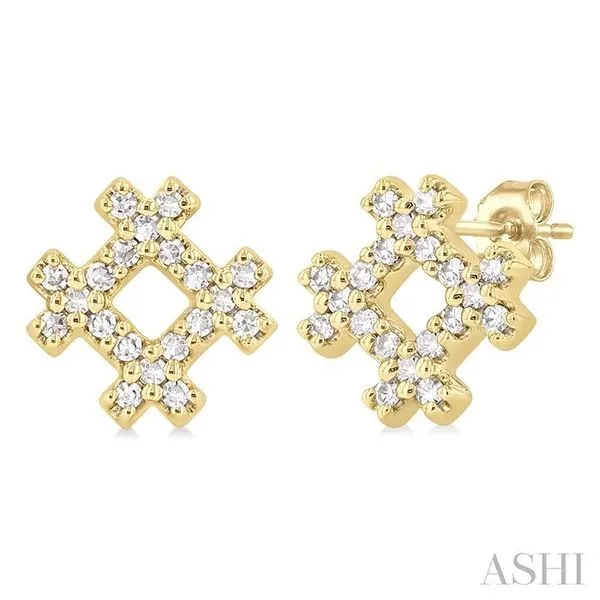 1/8 Ctw Petite Hashtag Motif Single Cut Diamond Fashion Earrings in 10K Yellow Gold Chandlee Jewelers Athens, GA