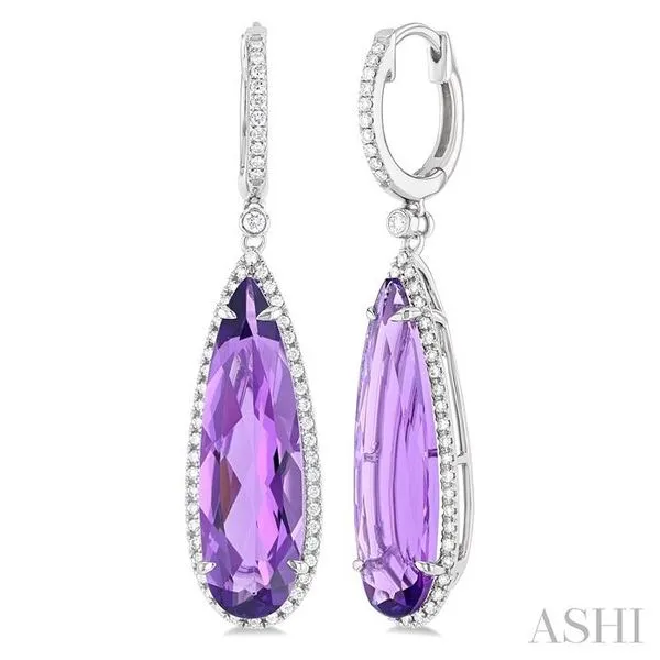 (706) 543-465323x7 MM Pear Shape Amethyst and 3/8 Ctw Round Cut Diamond Halo Semi-Precious Earrings in 14K White Gold