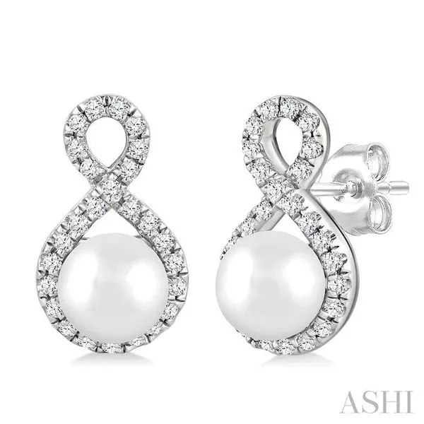 5 MM Cultured Pearls and 1/5 Ctw Single Cut Diamond Petite Earrings 10K White Gold Chandlee Jewelers Athens, GA