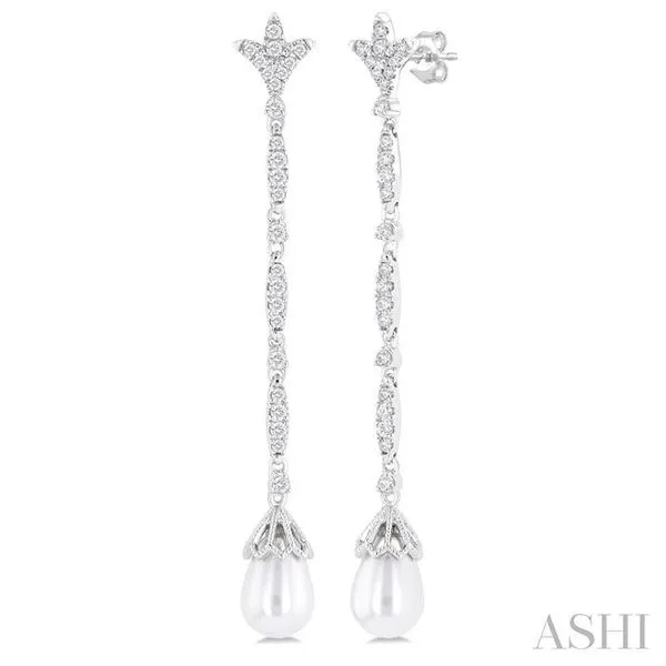 9X7 MM Marquise Link Teardrop Cultured Pearl and 1/2 ctw Round Cut Diamond Long Earring in 14K White Gold Chandlee Jewelers Athens, GA