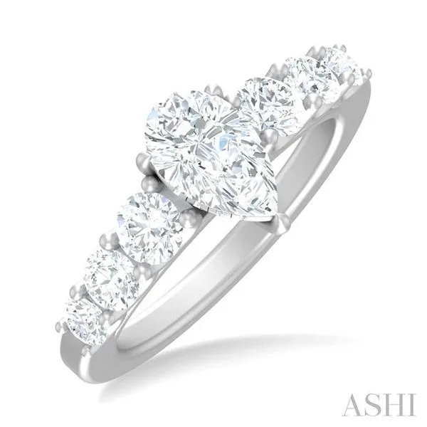 1 1/10 ctw Pear Shape Round Cut Diamond Semi Mount Engagement Ring in 14K White Gold Chandlee Jewelers Athens, GA