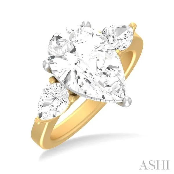 1 1/10 Ctw Tri-Mount Centerpiece Pear and Round Cut Diamond Semi-Mount Engagement Ring in 14K Yellow and White Gold Chandlee Jewelers Athens, GA