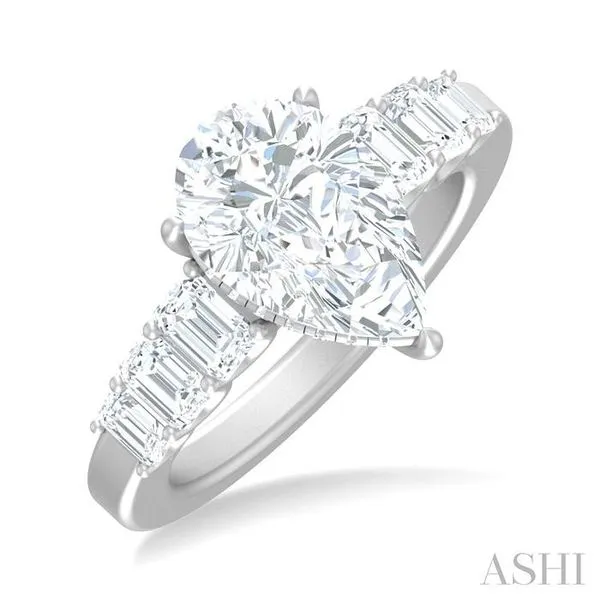 1 1/4 ctw Pear Shape Emerald and Round Cut Diamond Semi Mount Engagement Ring in 14K White Gold Chandlee Jewelers Athens, GA