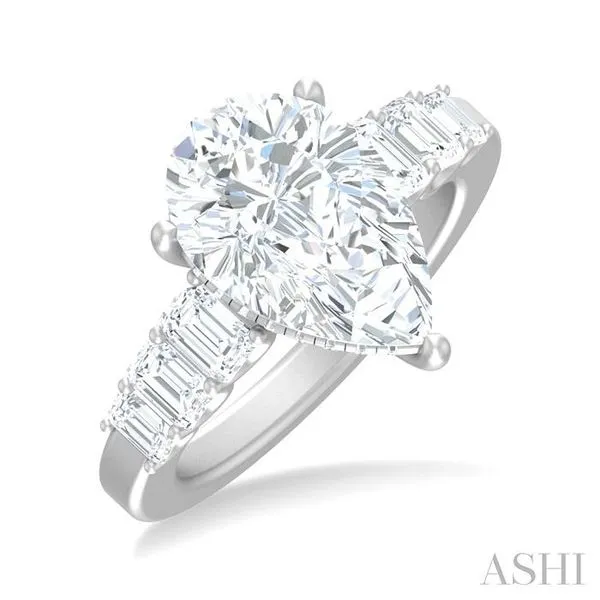 (706) 543-46531 1/4 ctw Pear Shape Emerald and Round Cut Diamond Semi Mount Engagement Ring in 14K White Gold