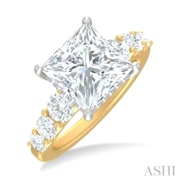 1 1/4 Ctw Princess Shape Round Cut Diamond Semi-Mount Engagement Ring in 14K Yellow and White Gold Chandlee Jewelers Athens, GA