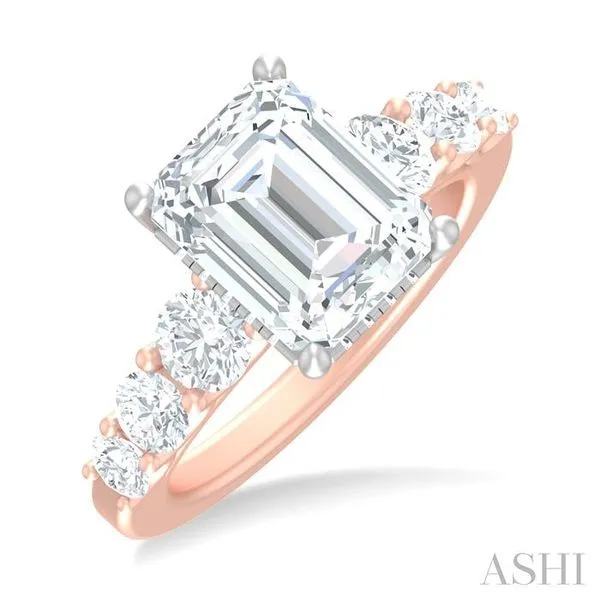 (706) 543-46531 1/5 Ctw Emerald Shape Round Cut Diamond Semi-Mount Engagement Ring in 14K Rose and White Gold