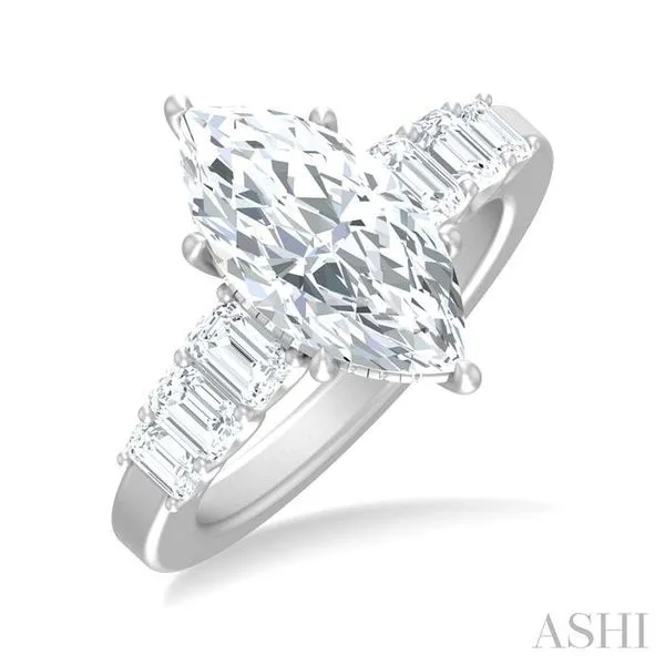 (706) 543-46531 1/5 ctw Marquise Shape Emerald and Round Cut Diamond Semi Mount Engagement Ring in 14K White Gold