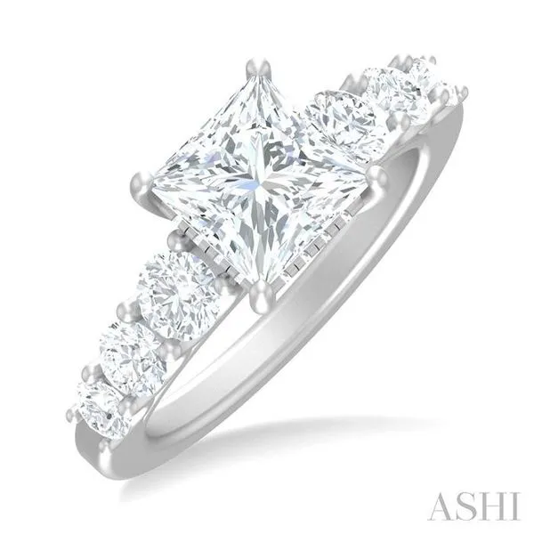 1 ctw Princess Shape Round Cut Diamond Semi Mount Engagement Ring in 14K White Gold Chandlee Jewelers Athens, GA