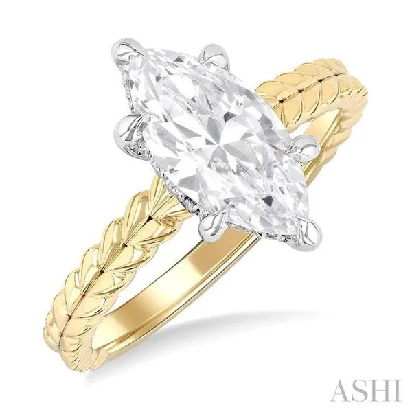 (706) 543-46531/10 Ctw Marquise Shape Round Cut Diamond Semi-Mount Engagement Ring in 14K Yellow and White Gold