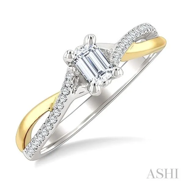 (706) 543-46531/2 Ctw Round Cut Diamond Engagement Ring With 1/3 Ct Emerald Cut Center Stone in 14K White and Yellow Gold