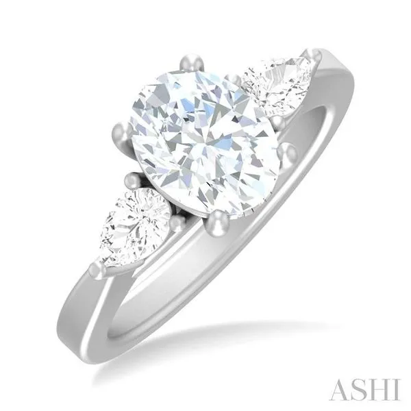 1/2 ctw Tri-Mount Oval Shape Center Pear and Round Cut Diamond Semi Mount Engagement Ring in 14K White Gold Chandlee Jewelers Athens, GA