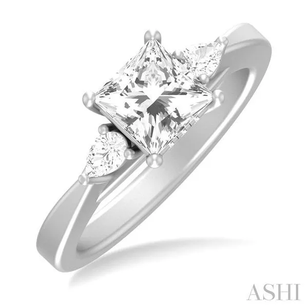 1/4 ctw Tri-Mount Princess Shape Center Pear and Round Cut Diamond Semi Mount Engagement Ring in 14K White Gold Chandlee Jewelers Athens, GA