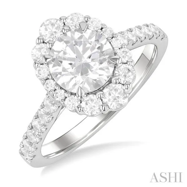 (706) 543-46533/4 Ctw Scalloped Oval Centerpiece Circular Shape Round Cut Diamond Semi-Mount Engagement Ring in 14K White Gold
