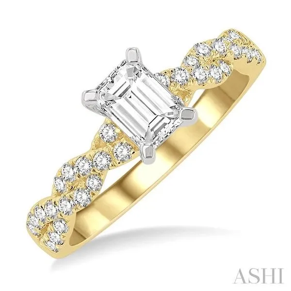 (706) 543-46537/8 Ctw Twisted Shank Round Cut Diamond Engagement Ring With 1/2 Ct Emerald Cut Center Stone in 14K Yellow and White Gold