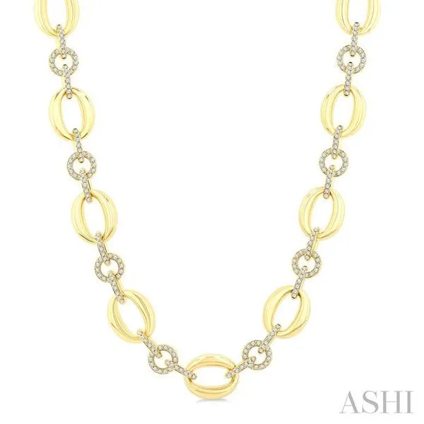 (706) 543-46532 1/3 Ctw Open-Window Oval and Circular Link Round Cut Diamond Bold Fashion Necklace in 14K Yellow Gold