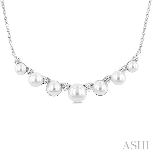3.5 MM-5 MM Cultured Pearl and 1/6 Ctw Round Cut Diamond Smile Necklace in 10K White Gold Chandlee Jewelers Athens, GA