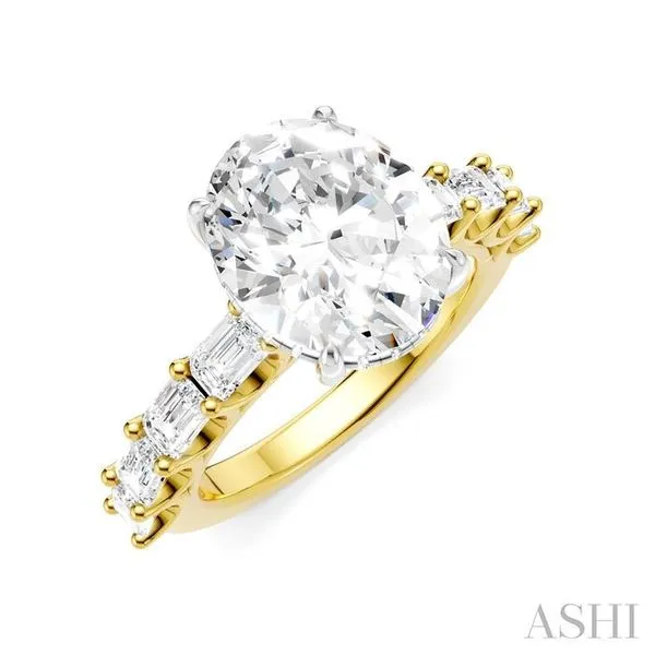 (706) 543-46531 1/3 Ctw Oval Shape Emerald and Round Cut Diamond Semi-Mount Engagement Ring in 14K Yellow and White Gold