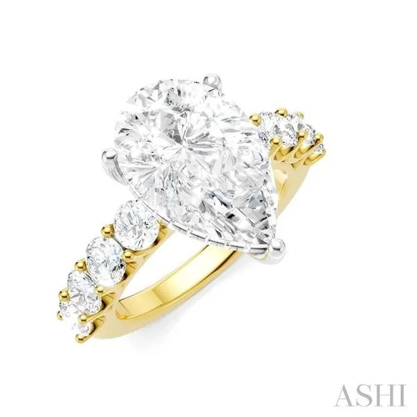 1 1/3 Ctw Pear Shape Round Cut Diamond Semi-Mount Engagement Ring in 14K Yellow and White Gold Chandlee Jewelers Athens, GA