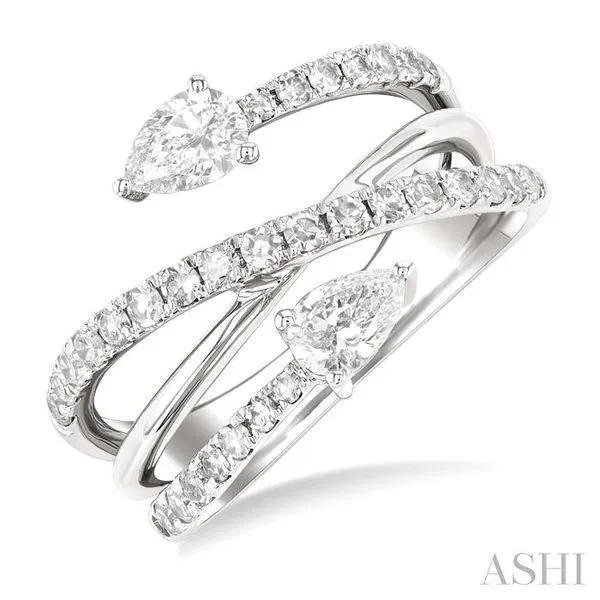 (706) 543-46531 Ctw East West Pear and Round Cut Diamond Split Open-End Fashion Ring in 14K White Gold