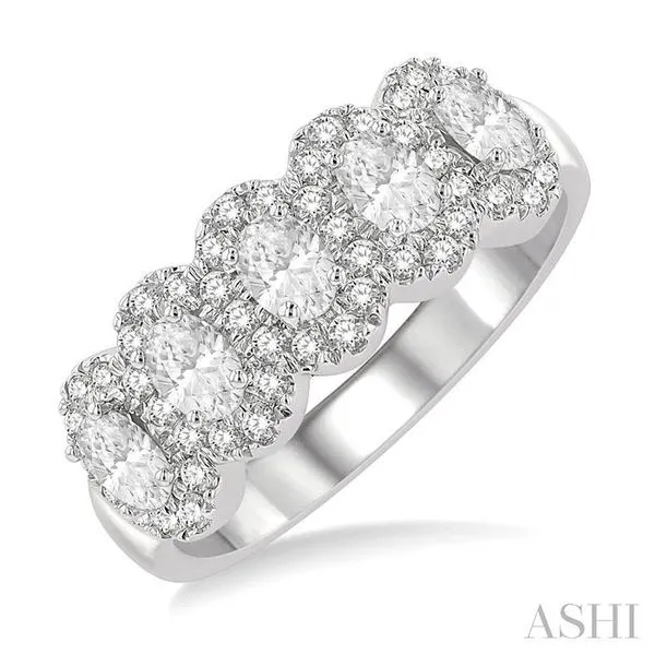 1 Ctw Oval Shape 5 Stone Oval & Round Cut Diamond Halo Wedding Band in 14K White Gold Chandlee Jewelers Athens, GA