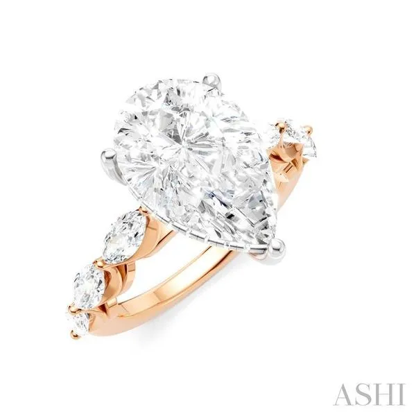 (706) 543-46531 Ctw Pear Shape Marquise and Round Cut Diamond Semi-Mount Engagement Ring in 14K Rose and White Gold
