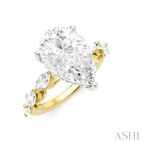 3. 1 Ctw Pear Shape Marquise and Round Cut Diamond Semi-Mount Engagement Ring in 14K Yellow and White Gold