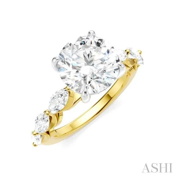 1 Ctw Round Shape Marquise and Round Cut Diamond Semi-Mount Engagement Ring in 14K Yellow and White Gold Chandlee Jewelers Athens, GA