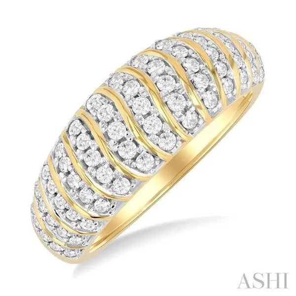 1/2 Ctw Lightweight Ribbed Round Cut Diamond Band in 10K Yellow Gold