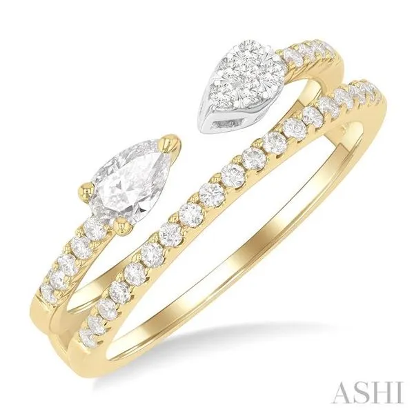 (706) 543-46531/2 Ctw Split Twin Row Lovebright Pear and Round Cut Diamond Fashion Ring in 14K Yellow and White Gold