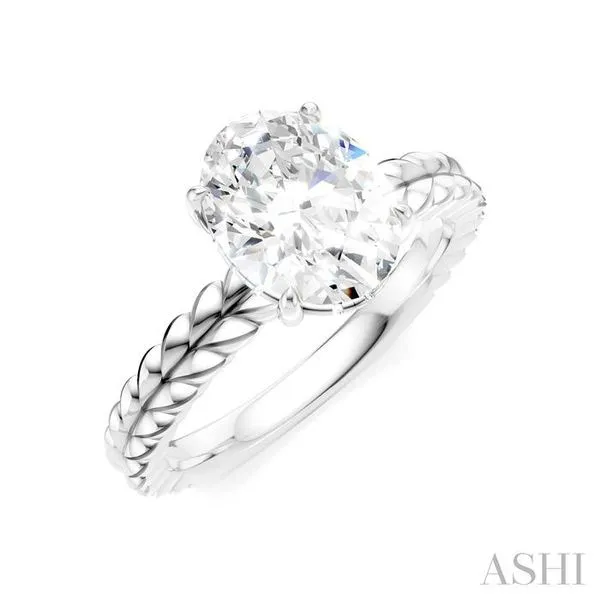 3. 1/20 Ctw Oval Shape Round Cut Diamond Semi-Mount Engagement Ring in 14K White Gold