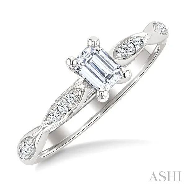 1/6 Ctw Emerald Shape Round Cut Diamond Semi-Mount Engagement Ring in 14K White Gold Chandlee Jewelers Athens, GA