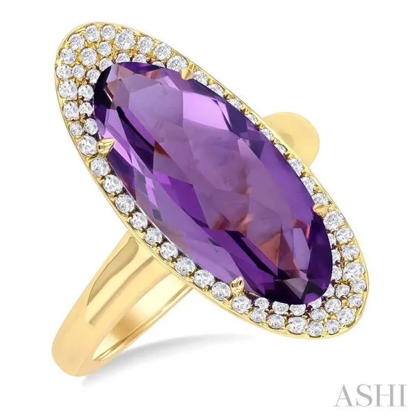 (706) 543-465318x8 MM Oval Cut Amethyst and 1/3 Ctw Round Cut Diamond Halo Semi-Precious Ring in 14K Yellow Gold