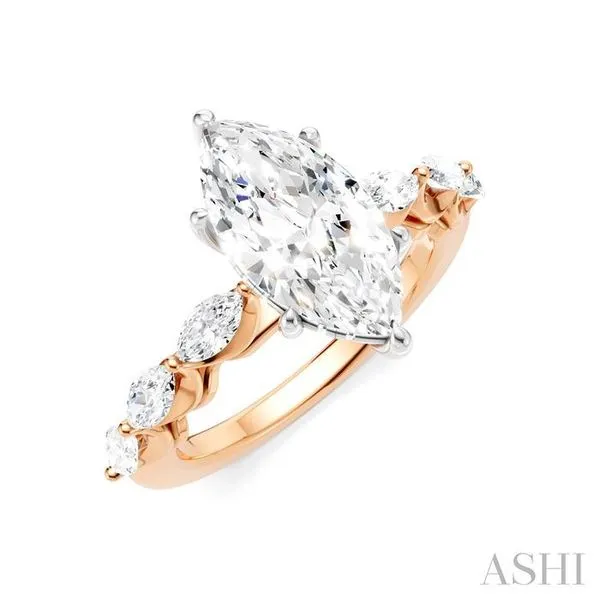 3/4 Ctw Marquise Shape Marquise and Round Cut Diamond Semi-Mount Engagement Ring in 14K Rose and White Gold Chandlee Jewelers Athens, GA