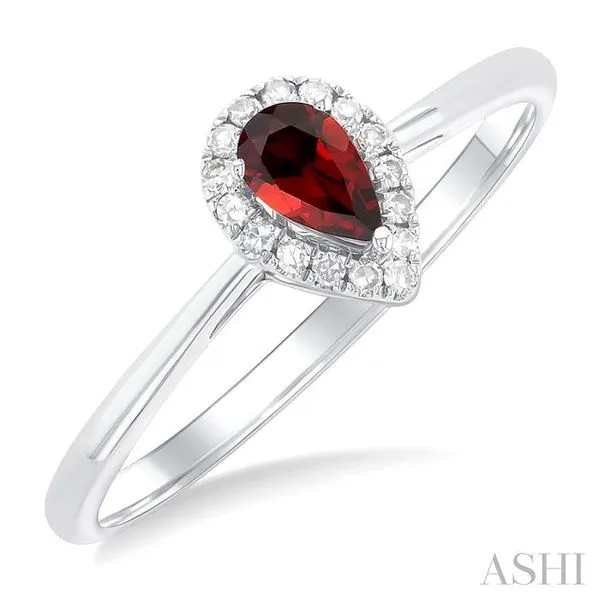(706) 543-46535x3 MM Pear Shape Garnet and 1/20 Ctw Single Cut Diamond Halo Semi-Precious Ring in 14K White Gold