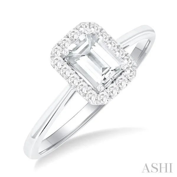 (706) 543-46536x4 MM Octagonal Shape White Topaz and 1/6 Ctw Round Cut Diamond Halo Semi-Precious Ring in 14K White Gold
