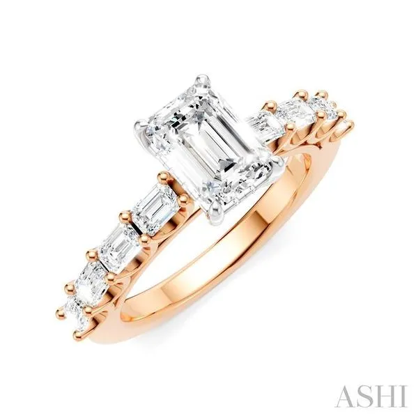 (706) 543-46537/8 Ctw Emerald Shape Emerald and Round Cut Diamond Semi-Mount Engagement Ring in 14K Rose and White Gold