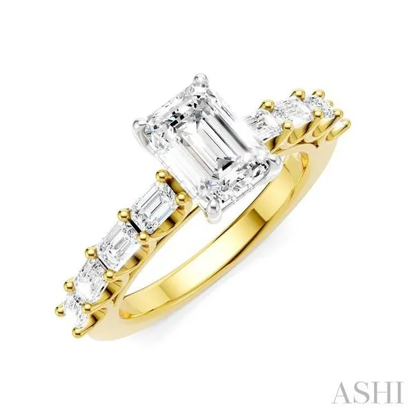 (706) 543-46537/8 Ctw Emerald Shape Emerald and Round Cut Diamond Semi-Mount Engagement Ring in 14K Yellow and White Gold