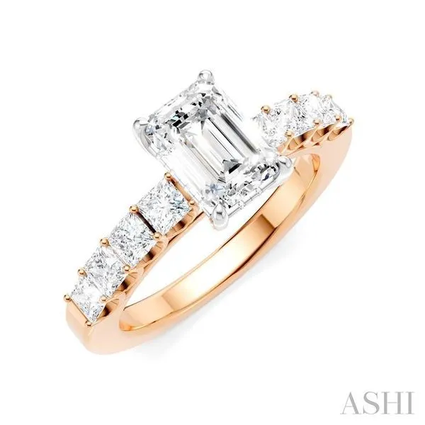 (706) 543-46537/8 Ctw Emerald Shape Princess and Round Cut Diamond Semi-Mount Engagement Ring in 14K Rose and White Gold