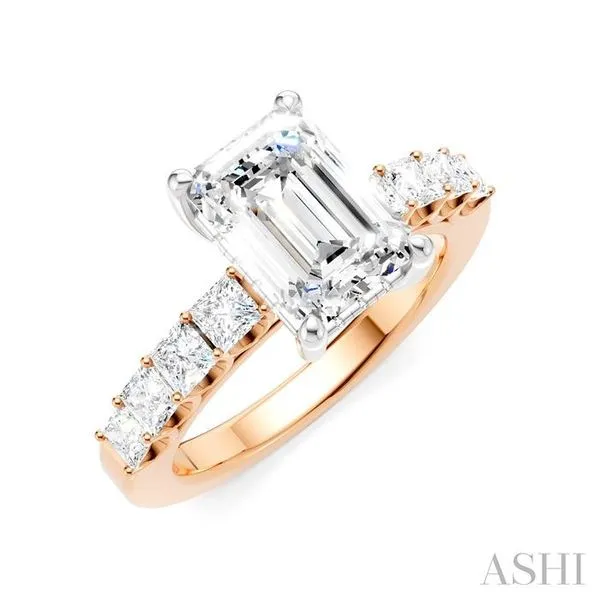 (706) 543-46537/8 Ctw Emerald Shape Princess and Round Cut Diamond Semi-Mount Engagement Ring in 14K Rose and White Gold