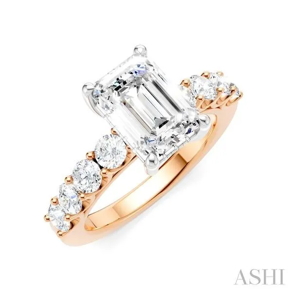 (706) 543-46537/8 Ctw Emerald Shape Round Cut Diamond Semi-Mount Engagement Ring in 14K Rose and White Gold