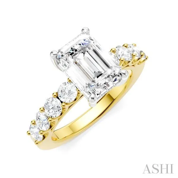 7/8 Ctw Emerald Shape Round Cut Diamond Semi-Mount Engagement Ring in 14K Yellow and White Gold Chandlee Jewelers Athens, GA