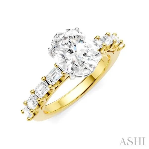 (706) 543-46537/8 Ctw Oval Shape Emerald and Round Cut Diamond Semi-Mount Engagement Ring in 14K Yellow and White Gold