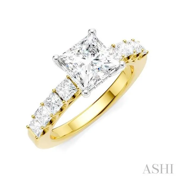 (706) 543-46537/8 Ctw Princess Shape Princess and Round Cut Diamond Semi-Mount Engagement Ring in 14K Yellow and White Gold