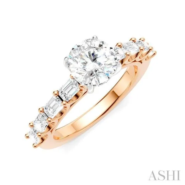 (706) 543-46537/8 Ctw Round Shape Emerald and Round Cut Diamond Semi-Mount Engagement Ring in 14K Rose and White Gold