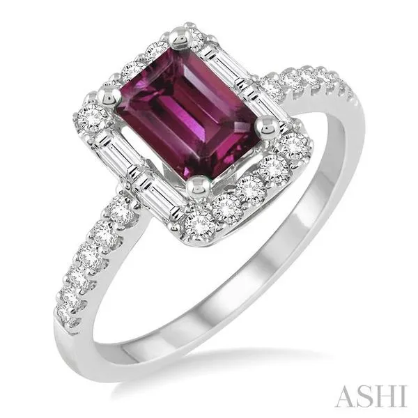7x5 MM Emerald Cut Rhodolite Garnet and 1/2 Ctw Diamond Semi Precious Ring in 14K White Gold Chandlee Jewelers Athens, GA